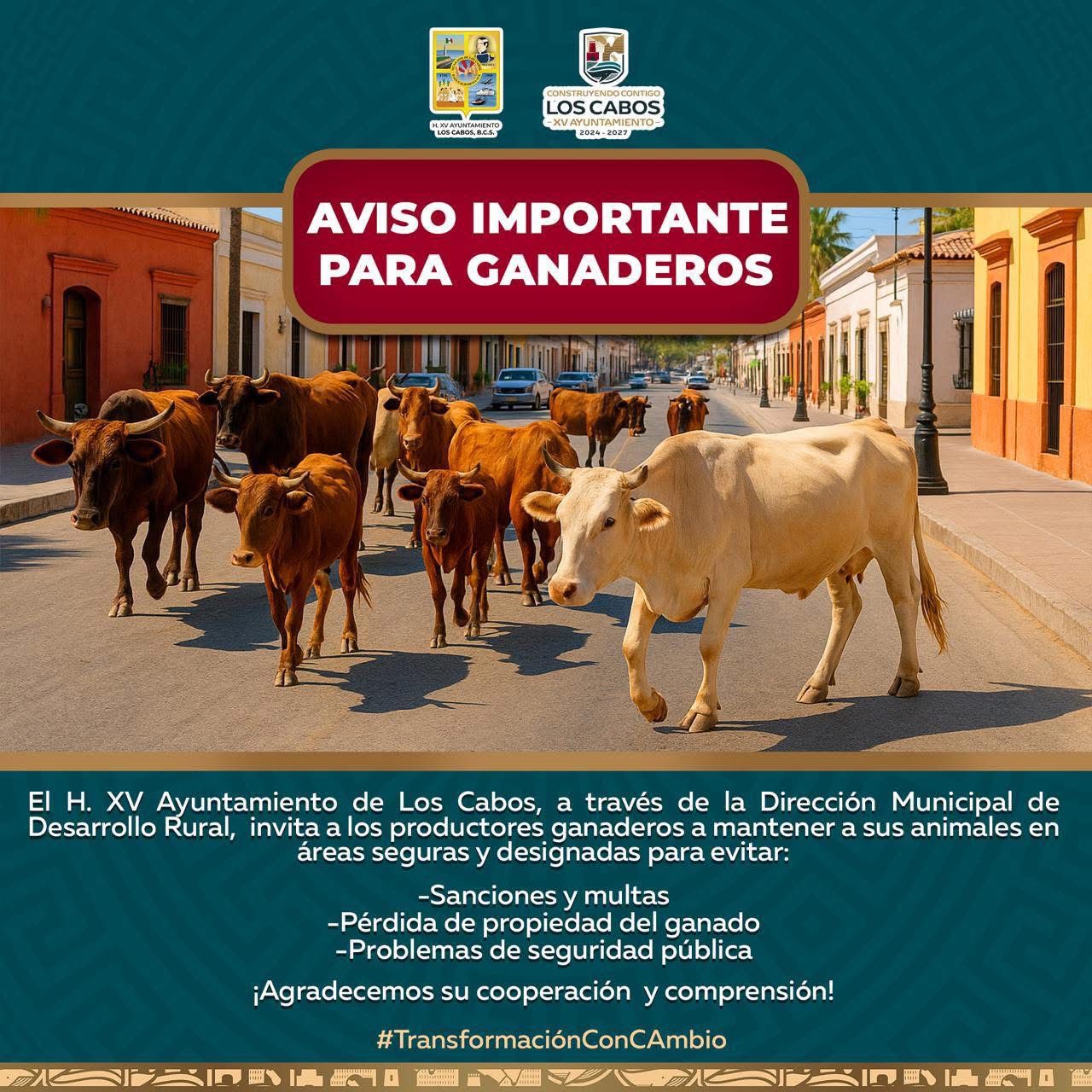 Llama Ayuntamiento de Los Cabos a productores a regular presencia de ganado en zona urbana
