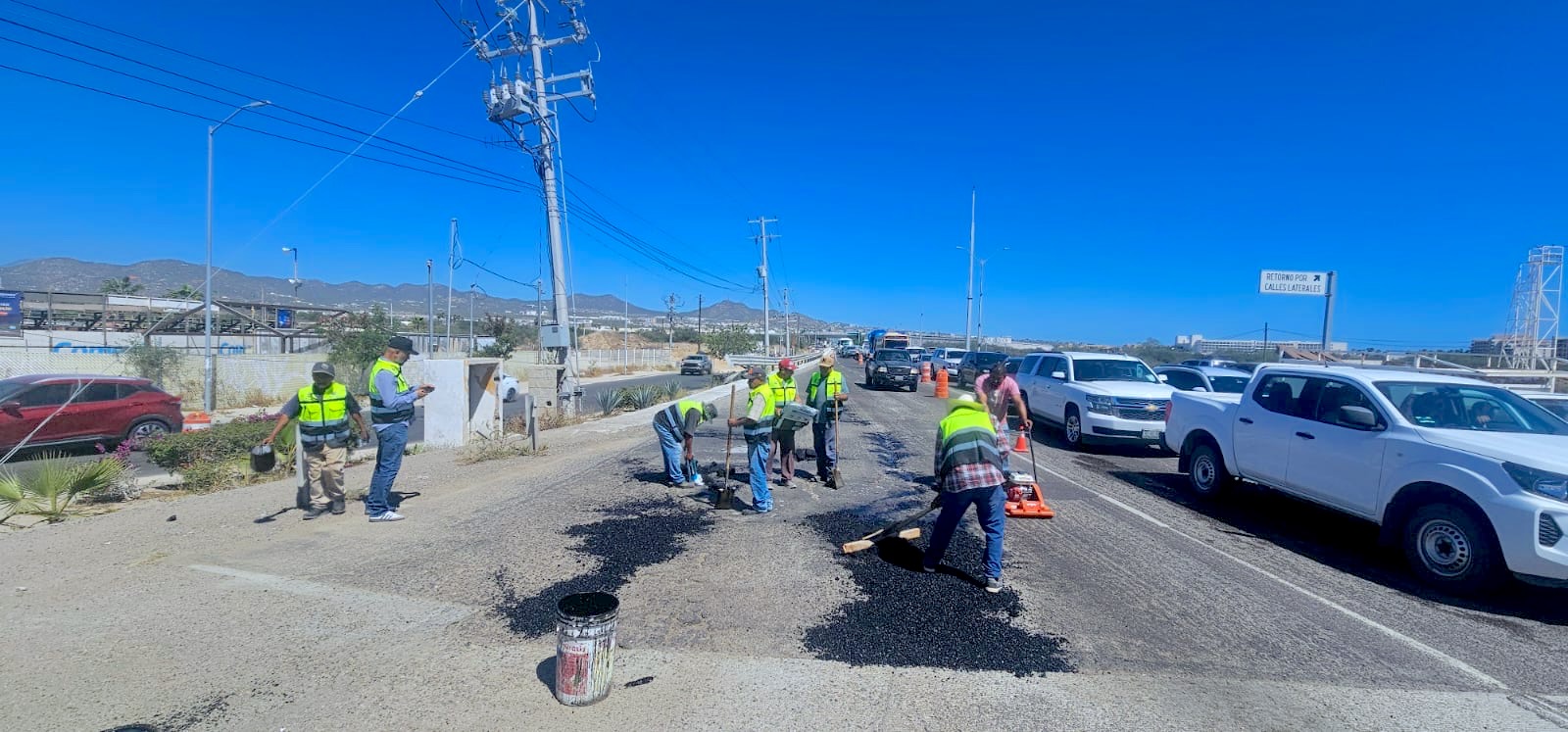 Con el programa “Caza Baches” se realizan trabajos sobre carretera Transpeninsular en Cabo San Lucas