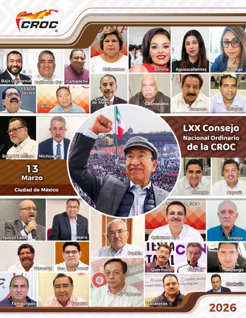 Los Cabos, BCS.- Todo se encuentra listo para que este 13 de marzo, en la Ciudad de México, se realice el LXX Consejo Nacional Ordinario de la CROC, donde se van a dar cita los dirigentes de las 32 entidades del país para ratificar el Plan de Trabajo 2026 diseñado bajo el liderazgo de Isaías González Cuevas, Secretario General del Comité Ejecutivo Nacional.