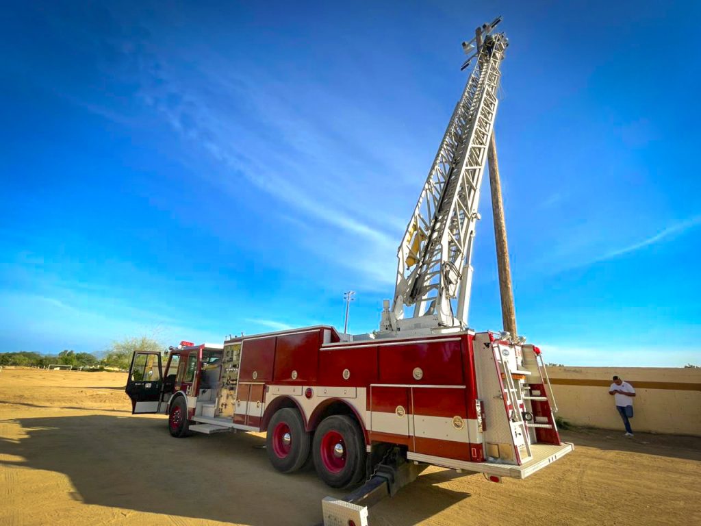 Los Cabos, Baja California Sur.– Con el propósito de reforzar los trabajos coordinados entre las áreas del XV Ayuntamiento de Los Cabos, el Departamento de Bomberos de San José del Cabo puso a disposición el camión escalera (ECO-01) para apoyar a la Dirección General de Servicios Públicos y al Instituto del Deporte del Municipio de Los Cabos (INDEM) en la rehabilitación de luminarias en centros deportivos de la zona norte del municipio. Estas acciones tienen un impacto directo en la ciudadanía de las delegaciones.