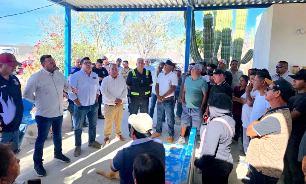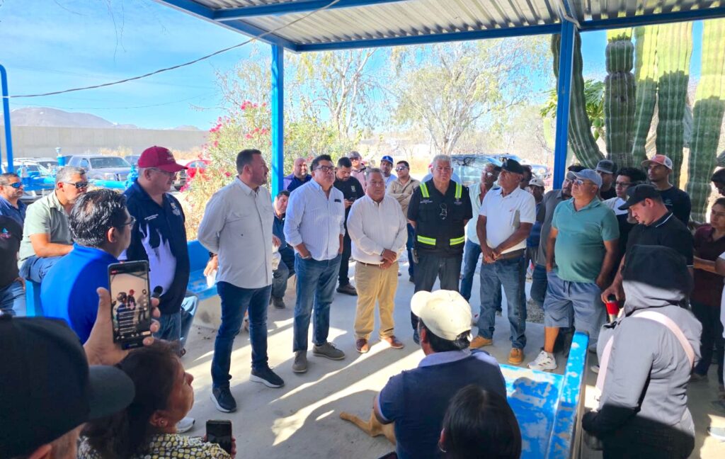 Los Cabos, Baja California Sur.– El secretario general del XV Ayuntamiento de Los Cabos, Alberto Rentería Santana, sostuvo reunión con transportistas de agua en el sitio donde se ubica el Pozo Estrella, en conjunto con el director general del OOMSAPAS Los Cabos, Ramón Rubio Apodaca, con el objetivo de atender la situación derivada del cierre de esta fuente de abastecimiento por parte de CONAGUA.