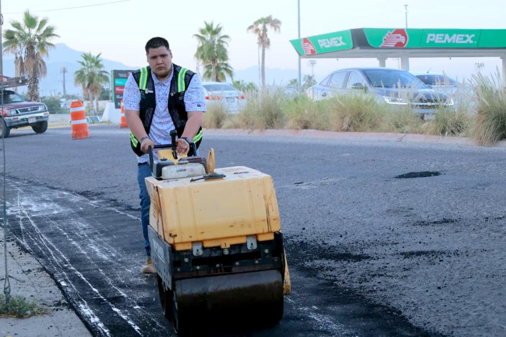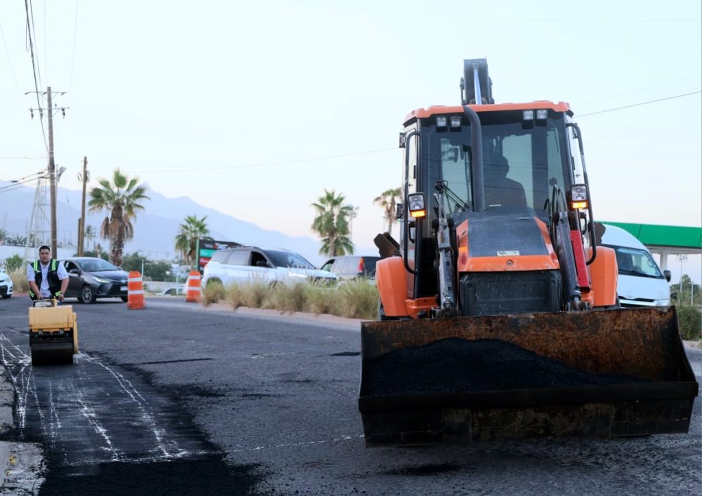 Los Cabos, Baja California Sur.-El equipo de la Dirección Municipal de Obras Públicas llevó a cabo este lunes trabajos de bacheo con carpeta asfáltica sobre la avenida Ignacio Zaragoza, una de las principales y más transitadas arterias de San José del Cabo.