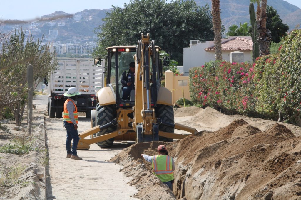 Los Cabos, Baja California Sur.– Como parte de las acciones prioritarias para fortalecer la infraestructura urbana y mejorar la movilidad, el XV Ayuntamiento de Los Cabos registra avances en la obra de pavimentación integral con concreto hidráulico de Camino El Tezal, en Cabo San Lucas.