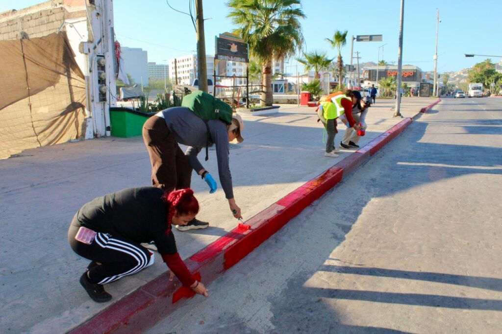 Destacó que en esta alianza se sumará el área de Transporte para apoyar con la pintura de los espacios amarillos de las paradas de autobuses, transporte urbano y taxis, e ir acorde con la pintura que se le está dando a los camellones; de esta manera se ofrecerá servicio integral de mantenimiento, prevención y embellecimiento del Centro de Cabo San Lucas.