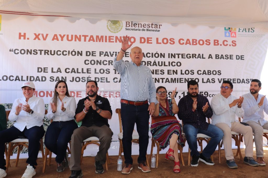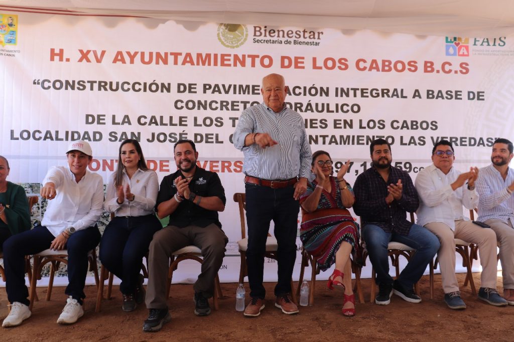 San José del Cabo.– El gobernador del estado, Víctor Castro Cosío, y el presidente municipal de Los Cabos, Christian Agúndez Gómez, dieron inicio a la obra de pavimentación de la calle Tabachines, ubicada en la colonia Las Veredas, con una inversión de 13.5 millones de pesos.