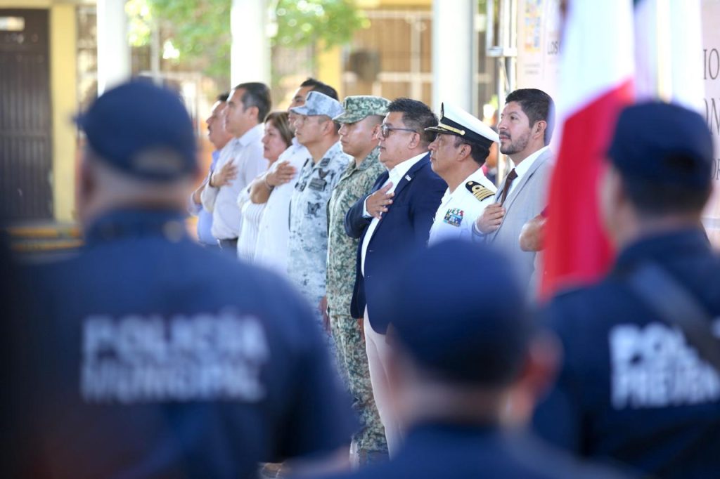 Tras los honores a la bandera, a cargo de la escolta y banda de guerra de la Dirección General de Seguridad Pública, Policía Preventiva y Tránsito Municipal, Rentería Santana destacó el legado del teniente Mijares, cuya valentía y entrega en defensa de la soberanía nacional continúa siendo un símbolo de identidad y orgullo para las y los sudcalifornianos.