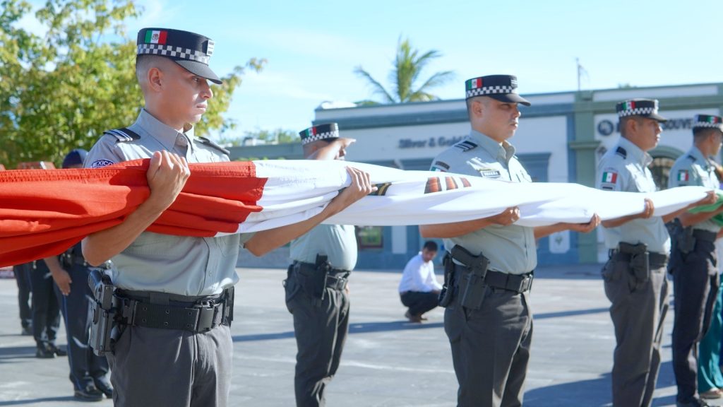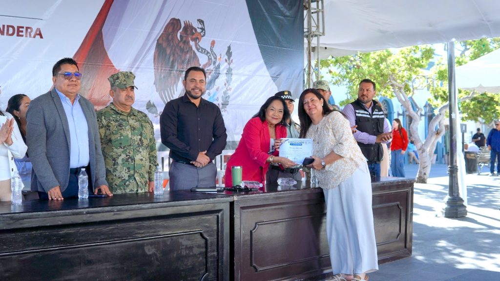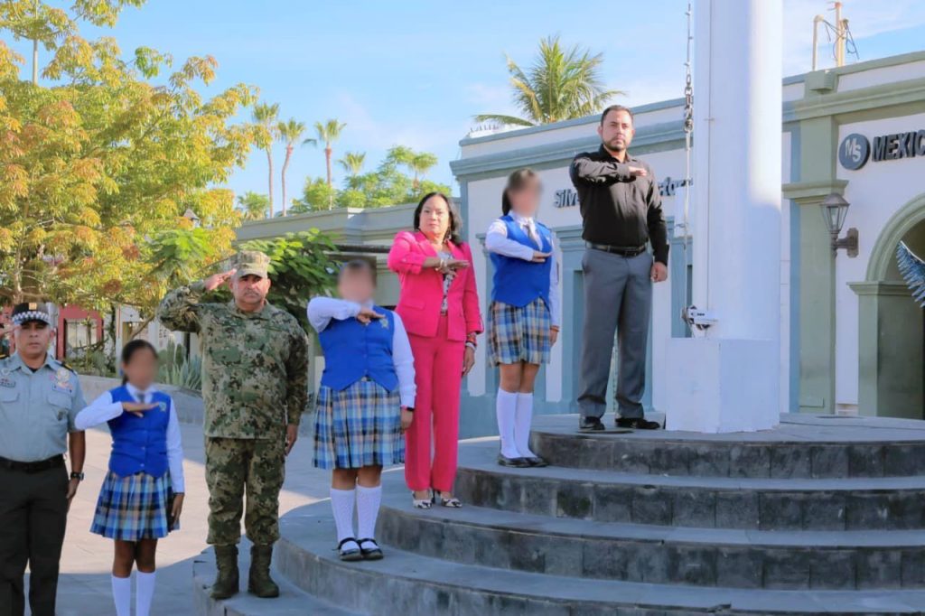 La ceremonia de honores a la bandera estuvo a cargo de la Dirección de Planeación para el Desarrollo Municipal, encabezada por María Guadalupe Ceseña Torres, quien subrayó los avances en materia de planeación participativa, el cumplimiento de metas del Plan de Desarrollo Municipal (PDM) y la alineación con los objetivos nacionales de desarrollo.