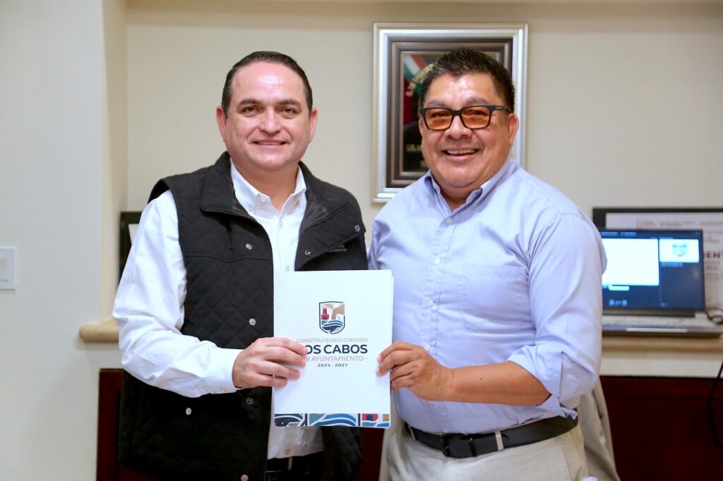 Los Cabos, Baja California Sur.-  En representación del presidente municipal del XV Ayuntamiento de Los Cabos, Christian Agúndez Gómez, el secretario general Alberto Rentería Santana, sostuvo una importante reunión con el subsecretario de Economía de Baja California Sur, Alonso Gutiérrez Martínez, con el objetivo de fortalecer estrategias en beneficio del sector productor y personas emprendedoras.