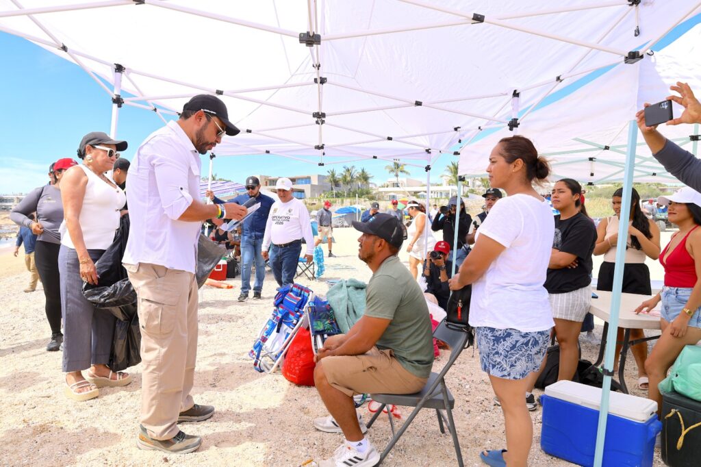 “Es importante poder visitar a todas las personas mientras están acampando, darles indicaciones y decirles que en estos recorridos vamos a estar; estamos ahorita aquí en El Tule, pero vamos a pasar a Chileno, Palmilla, La Fortuna, Los Frailes, Los Arbolitos, Cabo Pulmo, La Rivera y todas las zonas de playa para ponernos a la orden y ver que todo esté muy bien”, puntualizó el edil.