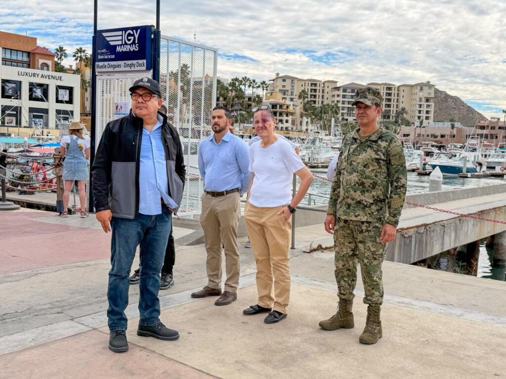 Los Cabos, Baja California Sur.– El secretario general del XV Ayuntamiento de Los Cabos, Alberto Rentería Santana, encabezó un operativo de supervisión en la Marina de Cabo San Lucas, como seguimiento a la reunión previamente sostenida con la Administración del Sistema Portuario Nacional (ASIPONA). En esta acción participaron diversas dependencias municipales, estatales y federales, con el objetivo de regularizar, ordenar y fortalecer la imagen urbana de esta importante zona turística del municipio.