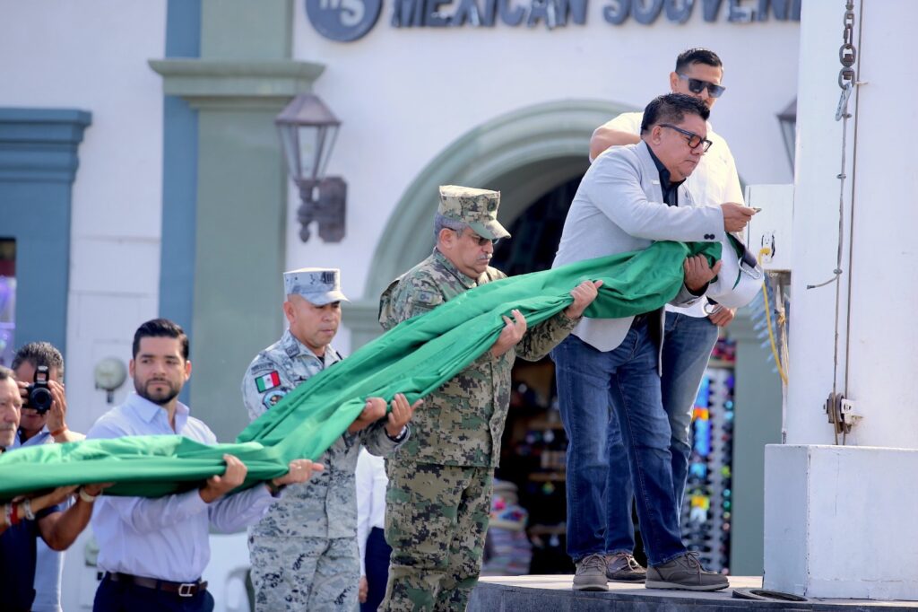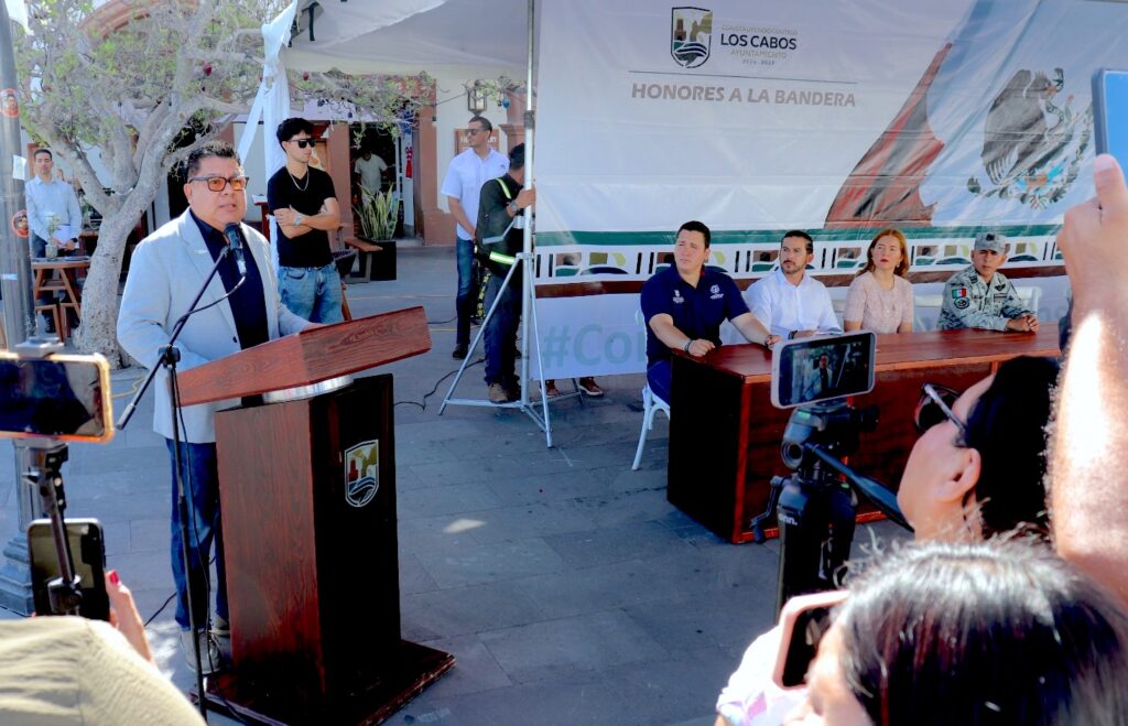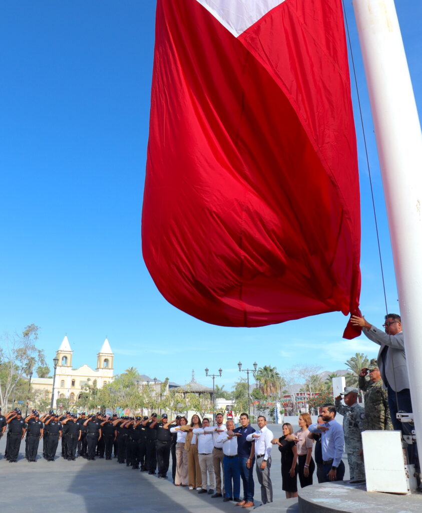 Los Cabos, Baja California Sur.– El XV Ayuntamiento de Los Cabos, a través de la Dirección Municipal de Gobierno, en coordinación con la Dirección Municipal de Educación, realizó la ceremonia de honores a los símbolos patrios en la explanada del palacio municipal.