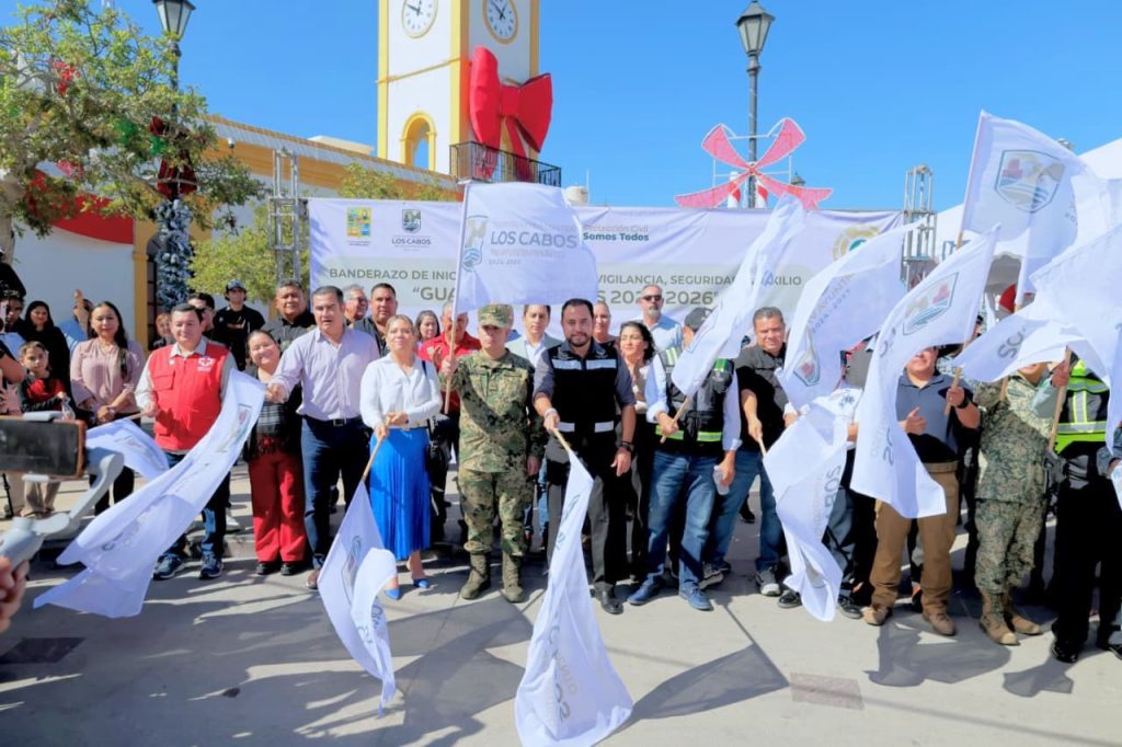 Los Cabos, Baja California Sur.- Desde la explanada del palacio municipal, en San José del Cabo, autoridades municipales, estatales y federales, así como cuerpos de auxilio y Fuerzas Armadas dieron el banderazo de inicio al Operativo de Vigilancia, Seguridad y Auxilio Guadalupe-Reyes 2025-2026, con el objetivo de reforzar la protección, prevención y atención a la ciudadanía durante la temporada decembrina.