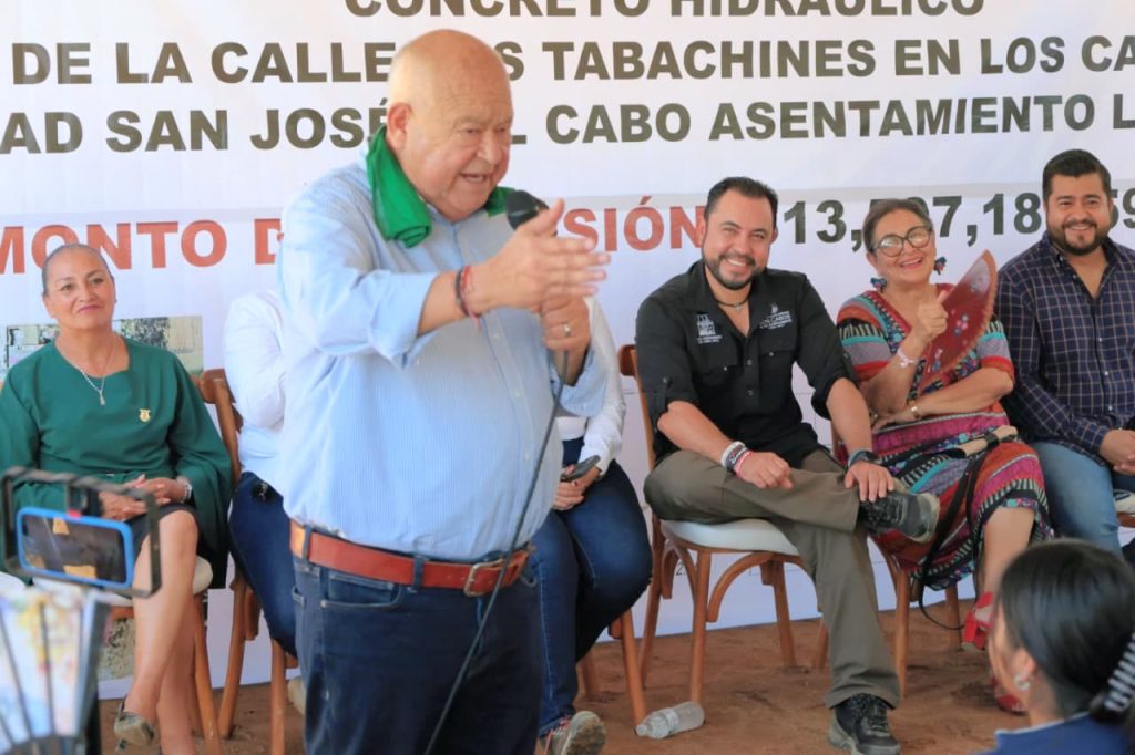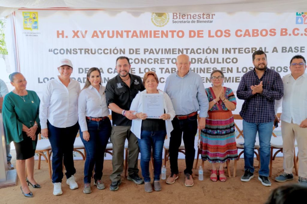 Los Cabos, Baja California Sur.– En un esfuerzo por continuar mejorando la movilidad y la calidad de vida de las familias cabeñas, el gobernador del estado Víctor Manuel Castro Cosío y el presidente municipal de Los Cabos Christian Agúndez Gómez, encabezaron el inicio de la obra de pavimentación integral con concreto hidráulico en la calle Los Tabachines de la colonia Las Veredas, con una inversión total de 13 millones 597 mil 186 pesos.
