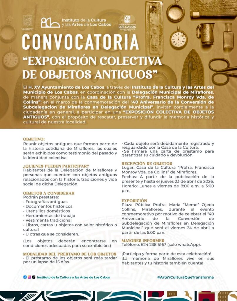 De igual manera, extendió una invitación a residentes y visitantes para sumarse a esta celebración, fortaleciendo el orgullo comunitario y preservando las costumbres que distinguen a Miraflores. Para mayores informes sobre convocatorias y actividades, la ciudadanía puede consultar las páginas oficiales de Facebook Delegación Municipal de Miraflores y Ayuntamiento de Los Cabos.