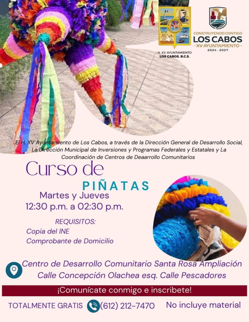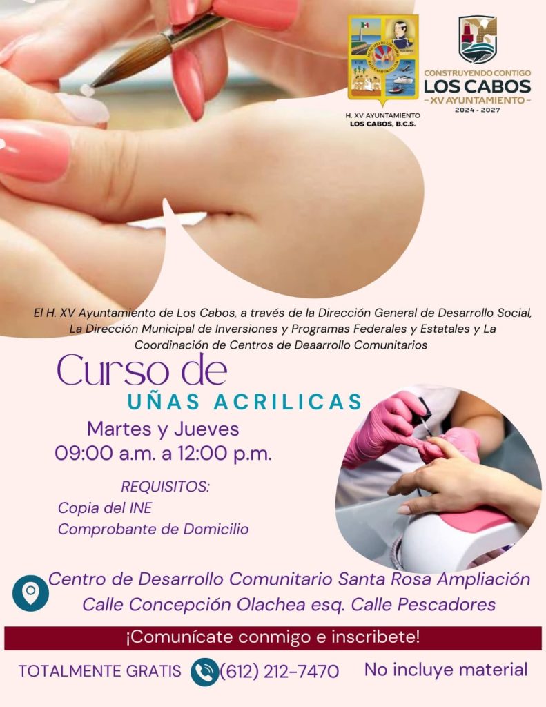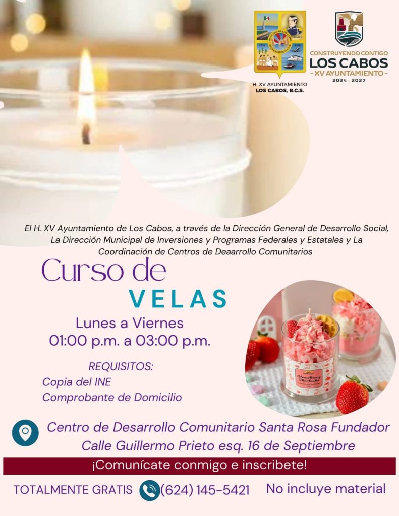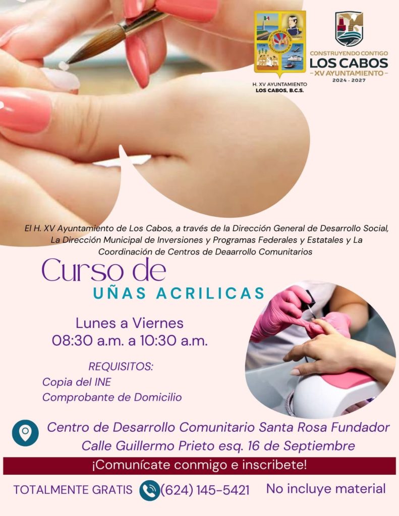 Los Cabos, Baja California Sur.- Con el propósito de fortalecer la economía local, impulsar el autoempleo y brindar herramientas para el desarrollo comunitario, el XV Ayuntamiento de Los Cabos, a través de la Dirección General de Desarrollo Social y la Dirección Municipal de Inversiones y Programas Federales y Estatales, invita a la ciudadanía a participar en los cursos gratuitos de capacitación que iniciarán el próximo jueves 08 de enero de 2026.