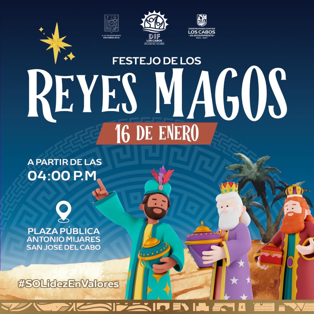 Los Cabos, Baja California Sur.- Con el objetivo de fortalecer la convivencia familiar y mantener vivas las tradiciones, el Sistema Municipal para el Desarrollo Integral de la Familia (DIF) de Los Cabos invita a niñas, niños y sus familias a participar en los festejos de Reyes Magos que se llevarán a cabo en distintas delegaciones del municipio durante enero.