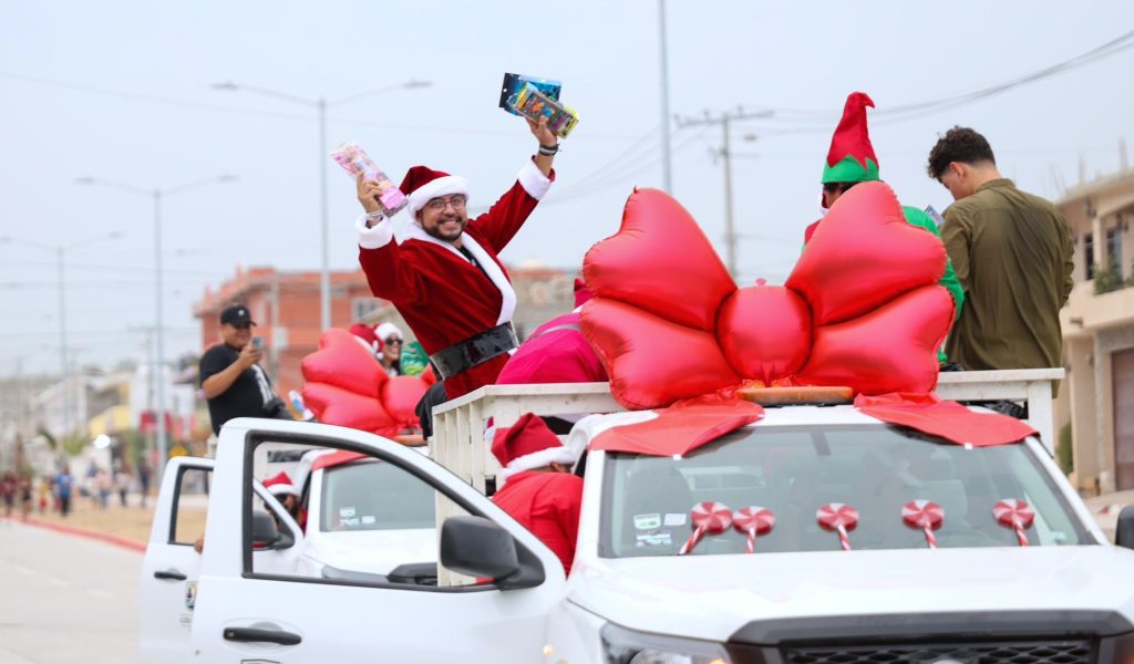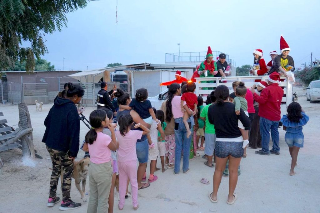 Los Cabos, Baja California Sur.– Porque los eventos con causa tienen la finalidad de llevar bienestar y felicidad, a unas horas de finalizar el 2025 el presidente municipal de Los Cabos Christian Agúndez Gómez, acompañado de su esposa, presidenta honoraria del Sistema para el Desarrollo Integral de la Familia (DIF), Sol Delgado Moreno y el reconocido artista, Alemán llevaron juguetes a diversas colonias de Cabo San Lucas