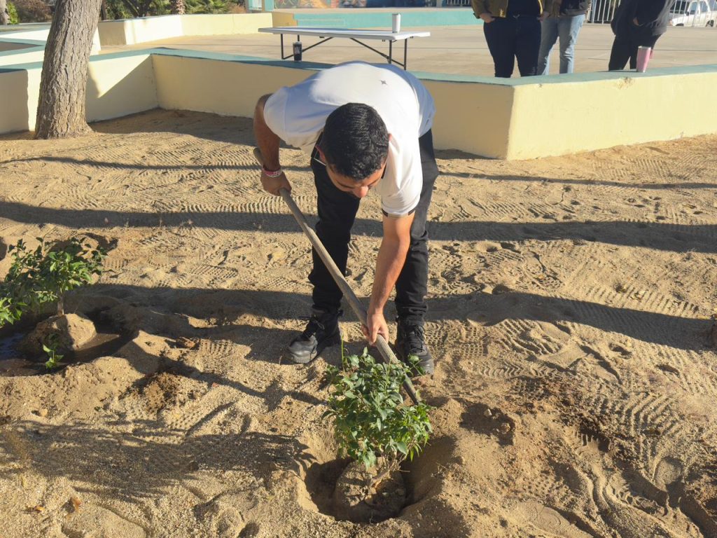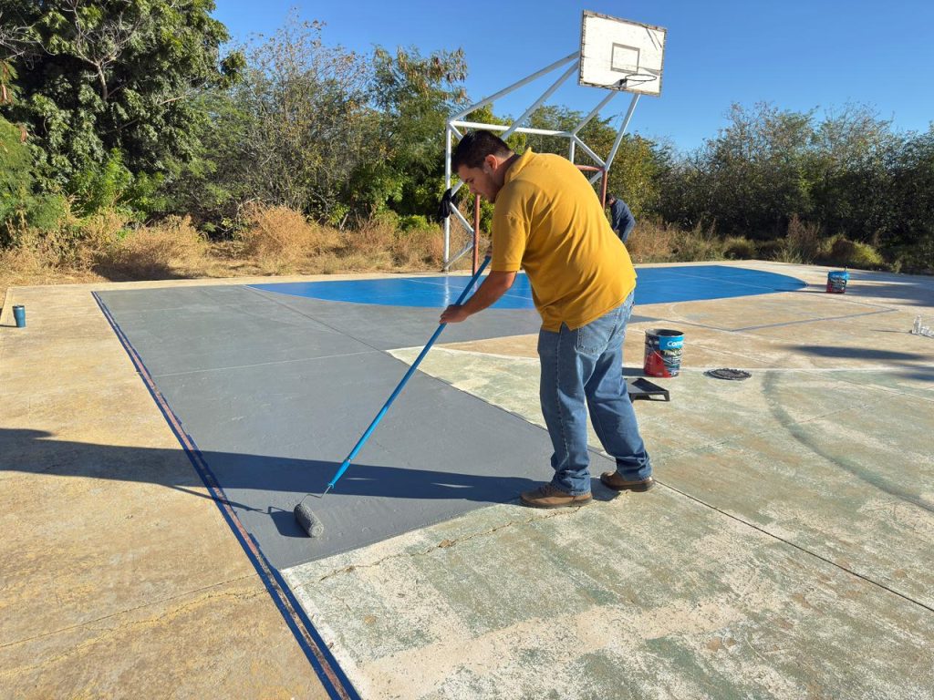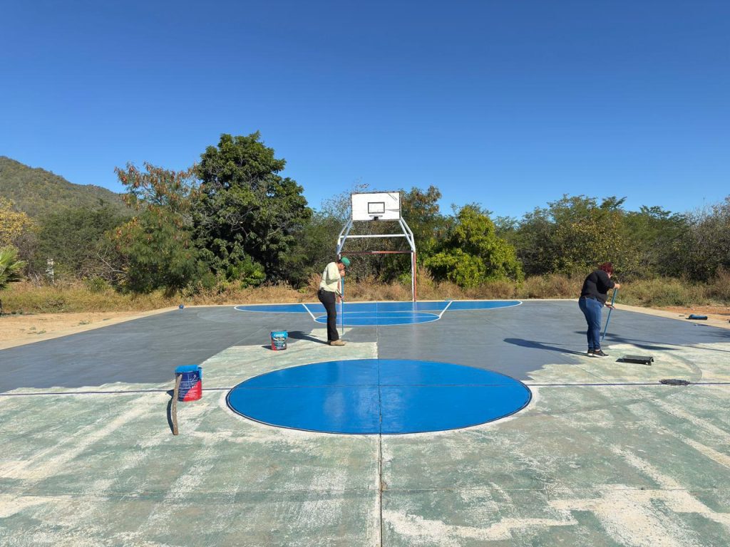 De igual manera, se llevaron a cabo acciones de reforestación en las jardineras de la plaza pública, además de trabajos de mantenimiento en la cancha de basquetbol, contribuyendo al mejoramiento de los espacios recreativos y comunitarios.