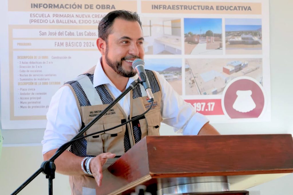 Los Cabos, Baja California Sur.- Derivado del incremento poblacional que se vive en el municipio de Los Cabos, el gobernador del estado, Víctor Manuel Castro Cosío, acompañado del presidente municipal Christian Agúndez Gómez, autoridades estatales y municipales, hizo entrega del jardín de niños, escuela primaria, secundaria y conversión de preparatoria “Nueva Creación“ en la colonia La Ballena en San José del Cabo, en la cual se invirtieron más de $90 millones de pesos a través del Instituto Subcaliforniano de la Infraestructura Física Educativa (ISIFE).