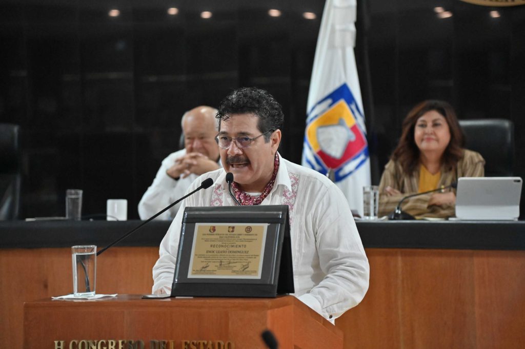Por su destacada labor en la promoción y difusión de las artes y la cultura popular del Estado, así como por su brillante trayectoria artística de más de tres décadas, el Congreso del Estado otorgó la medalla “Reconocimiento al Mérito Artístico y Cultural del Estado” a Enoc Leaño Domínguez, además de una placa firmada por los titulares de los tres poderes públicos de Baja California Sur.