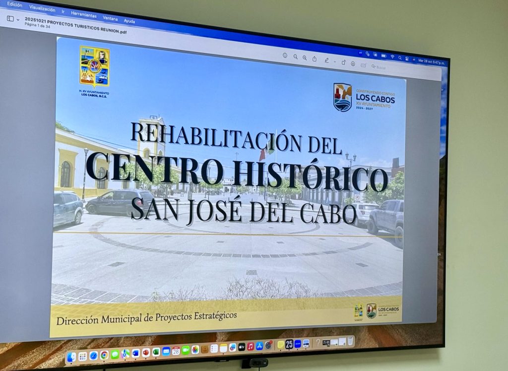 Asimismo, se presentaron las propuestas de intervención en el mirador de San José del Cabo, ubicado en Playa Costa Azul, y las acciones de rehabilitación y mantenimiento del Centro Histórico, con el propósito de preservar su valor cultural, turístico y social. Estas obras forman parte de un plan coordinado para revitalizar el entorno urbano y fortalecer la identidad del destino.
