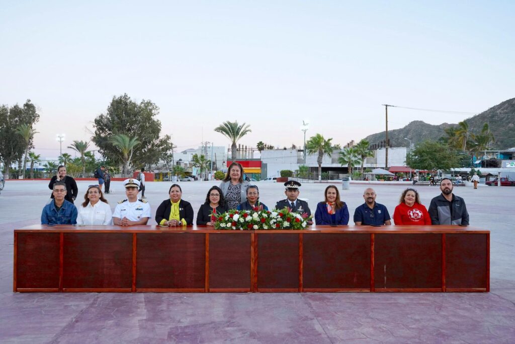 Durante el acto cívico se contó con la presencia de la responsable de la Dirección Municipal de la Visitaduría Interna Brenda Guadalupe Galvez Rivas en representación de la síndica municipal, Nélida Dolores Alfaro Rosas; el contralor municipal, Mario Alejandro Fernández Briseño; el coordinador municipal de Zofemat, Rafael Álvarez Munguía; el capitán de corbeta Bayron Ramales, en representación del Sector Naval de Cabo San Lucas; el teniente de la Guardia Nacional, Mario Taboada Landa; la directora municipal de Educación, Divulgación y Promoción Ambiental, Cristina Núñez Cosío; la directora municipal de Organización y Participación Ciudadana, Judith Pérez Herrera; el director del Cobach No. 04, Renato Leal Flores; así como la subdirectora de la Escuela Secundaria Técnica No. 16, Maribel Angulo Osuna.
