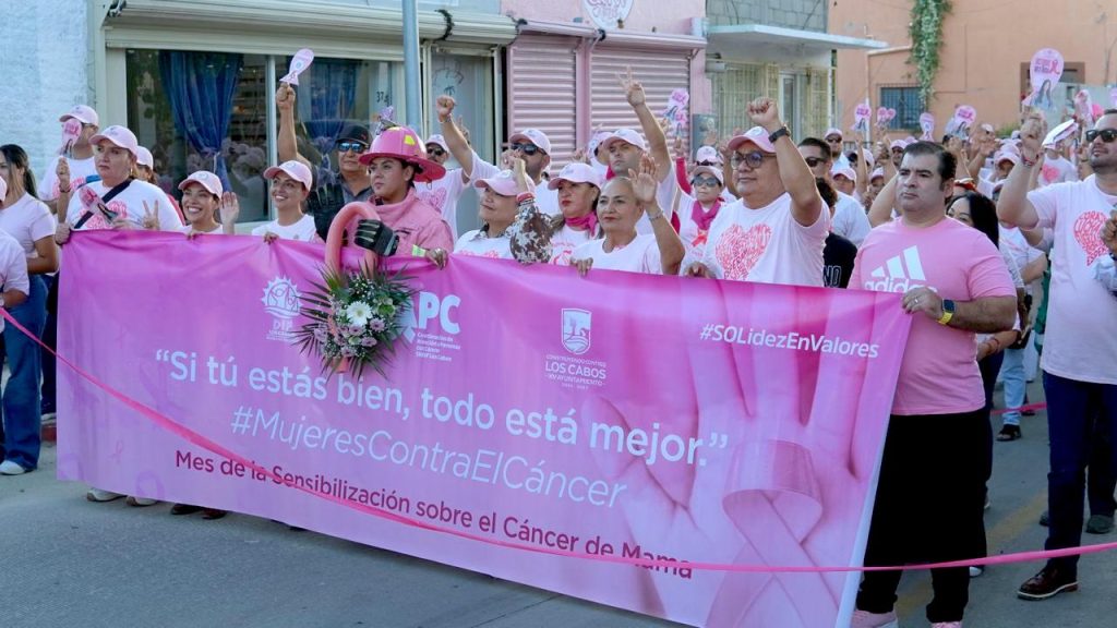 Los Cabos, Baja California Sur.– En el marco del Mes Rosa, el XV Ayuntamiento de Los Cabos, a través del Sistema Municipal para el Desarrollo Integral de la Familia (DIF), organizó la Caminata Rosa 2025 con el objetivo de impulsar la prevención y detección oportuna del cáncer de mama. La caminata partió desde la Jurisdicción Sanitaria hasta la plaza José Antonio Mijares, en San José del Cabo, reuniendo a cientos de personas en una jornada de solidaridad, reflexión y esperanza.