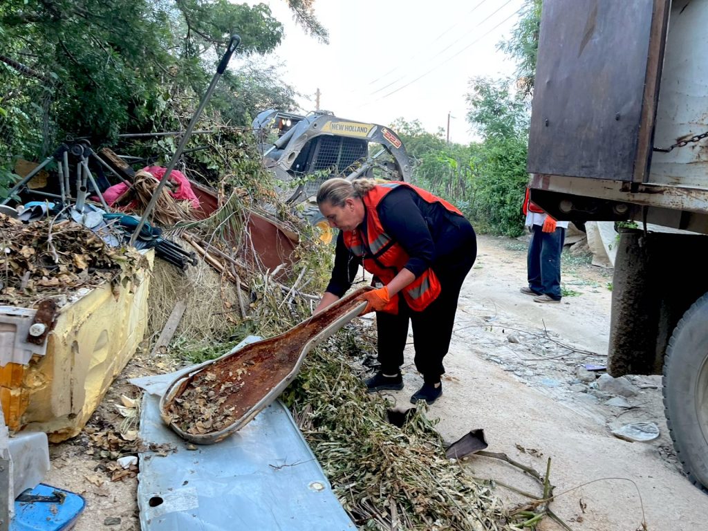 Los Cabos, Baja California Sur.- Por segundo día consecutivo se llevó a cabo la jornada de limpieza en la comunidad de Santa Catarina, una acción encabezada por la VI regidora Marisela Montaño Peralta, en coordinación con el diputado Omar Torres Orozco y con el apoyo del personal de la Dirección de Servicios Públicos.
