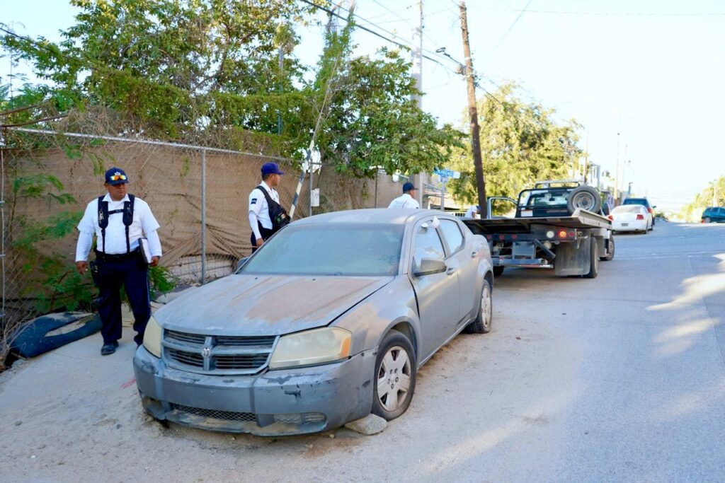 Los Cabos, Baja California Sur.– Como parte de las acciones para mantener espacios públicos seguros, limpios y ordenados, la Delegación de Cabo San Lucas realizó el retiro de vehículos en abandono y supervisó establecimientos comerciales en las colonias 4 de Marzo y Obrera.