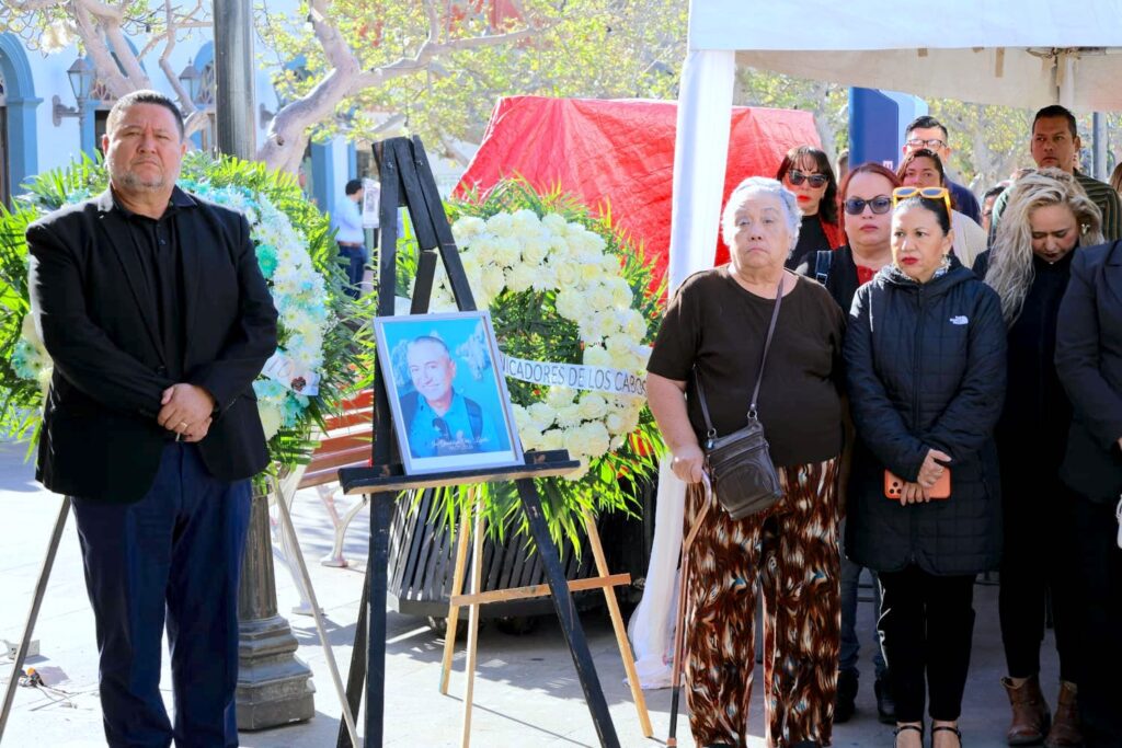 Por su parte, el presidente de la Asociación de Comunicadores Unidos de Los Cabos A.C., Gastón Montaño Álvarez, ofreció un mensaje en el que señaló que el periodismo de Baja California Sur, particularmente en Los Cabos, se encuentra triste y de luto por la partida de uno de sus integrantes.