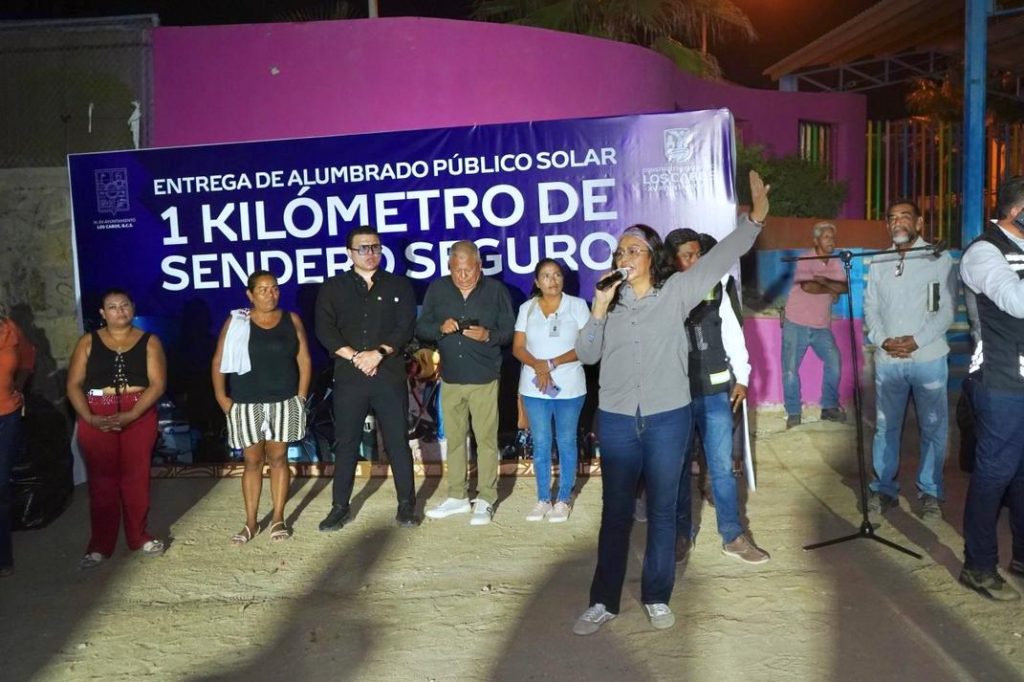 Los Cabos, Baja California Sur.– Con la presencia de vecinos, autoridades delegacionales y municipales, se llevó a cabo la inauguración de un kilómetro de alumbrado público solar en la colonia López Obrador en la Delegación de Cabo San Lucas, como parte del programa federal de “Senderos Seguros” que impulsa la XV Administración Municipal.